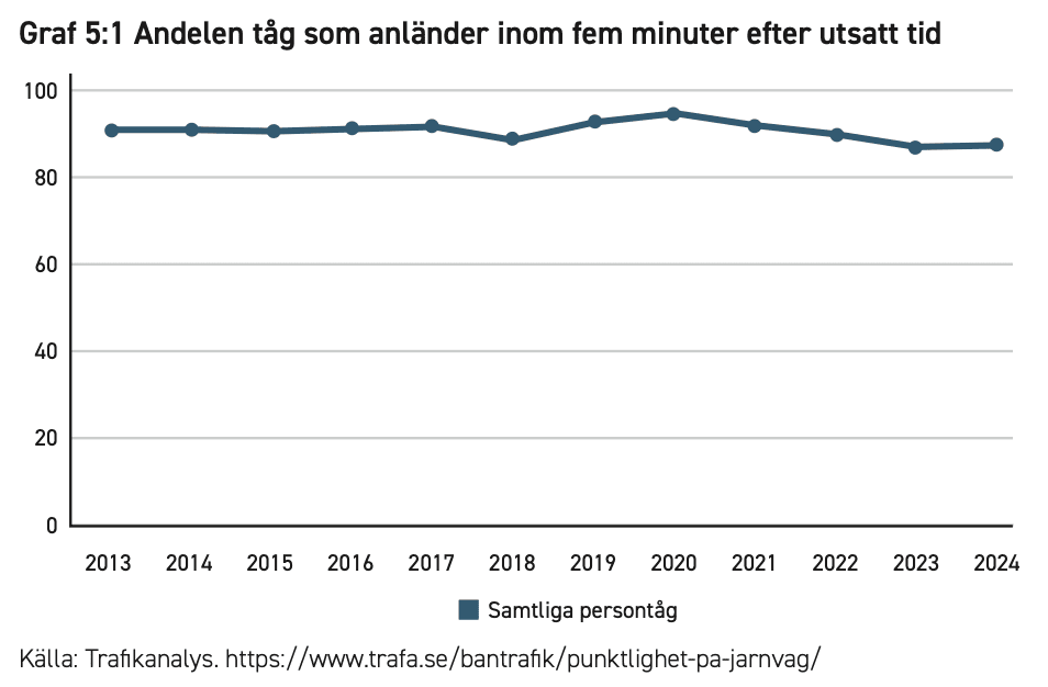 Trafikverket (2025), Järnkoll på tågresor, 25 juni. <https://www.trafikverket.se/resa-och-trafik/jarnvag/jarnkoll–fakta-om-svensk-jarnvag/jarnkoll-pa-tagresor/>