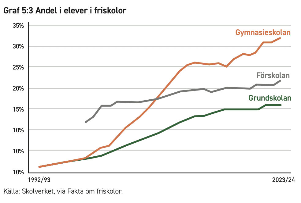 [71] Almega Utbildning (2025). Alla elever har inte två föräldrar, och en del elever har syskon som också går i friskolor, vilket gör att det inte finns någon siffra på exakt hur många som berörs.