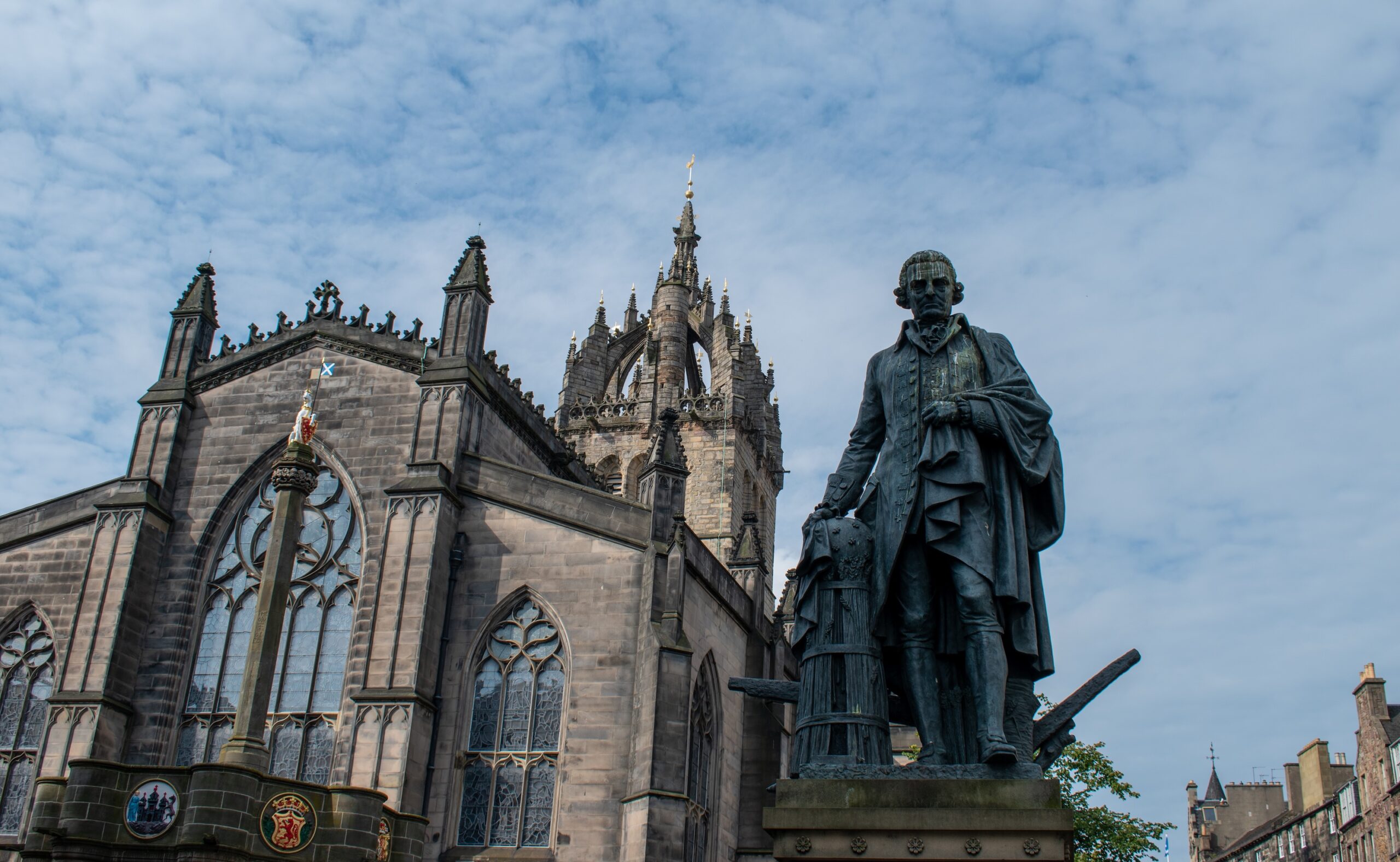 Omslagsbilden föreställer en Adam Smith-staty i Edinburgh. Foto: Shutterstock