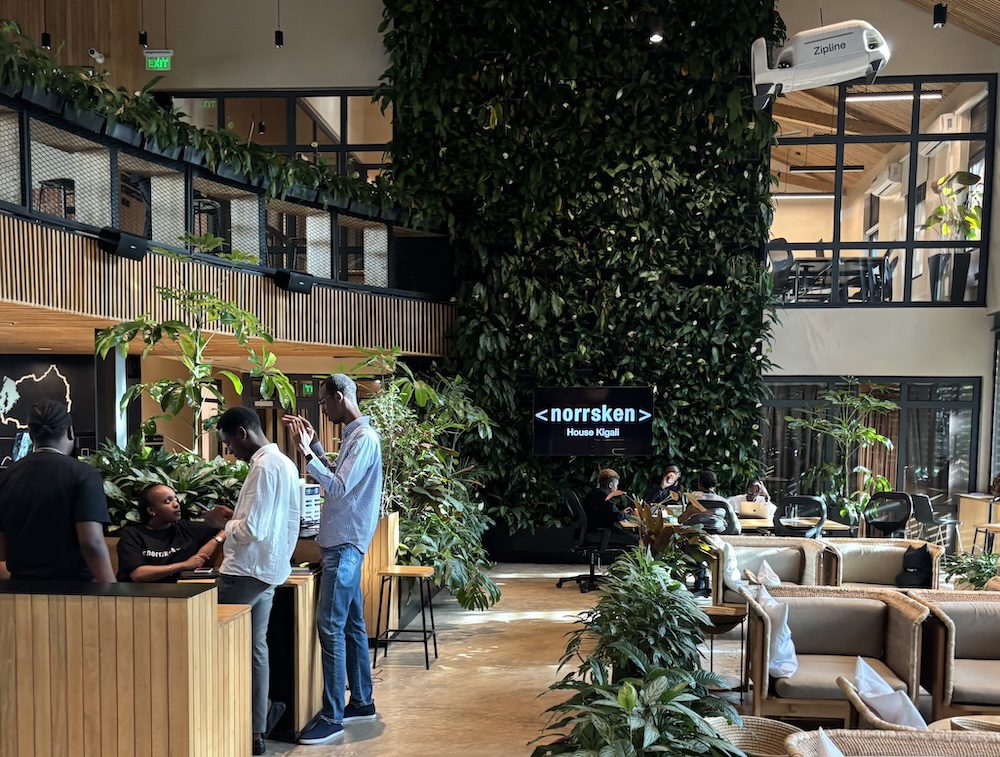 Norrsken House grundades som en ideell stiftelse 2016 för att stödja entreprenörer som vill bidra till positiv samhällsförändring. Och den som går genom porten på Norrsken House i Rwandas huvudstad Kigali kan lätt tro att man teleporterats till London eller San Francisco. Överallt unga, modemedvetna entreprenörer, med laptops i knät. Det enda som vittnar om att man befinner sig i Centralafrika är den tropiska trädgården utanför den luftiga byggnaden.