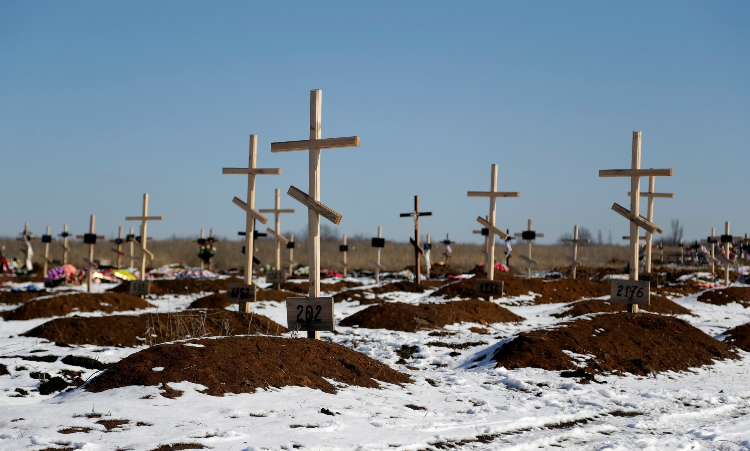 Omslagsbilden föreställer omärkta gravar i östra Ukraina. Foto: Petr David Josek/AP
