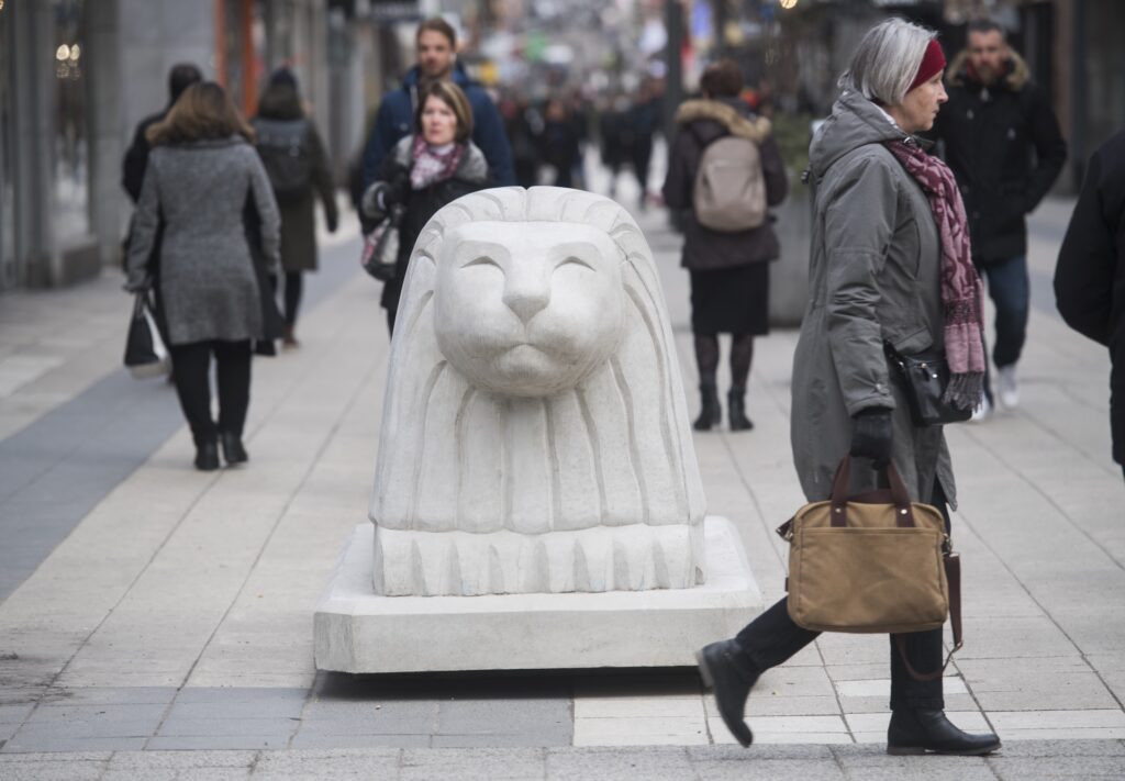Betonglejonen är ett exempel på konst i det offentliga rummet som fyller ett annat syfte än att vara fri konst. Foto: Fredrik Sandberg/TT