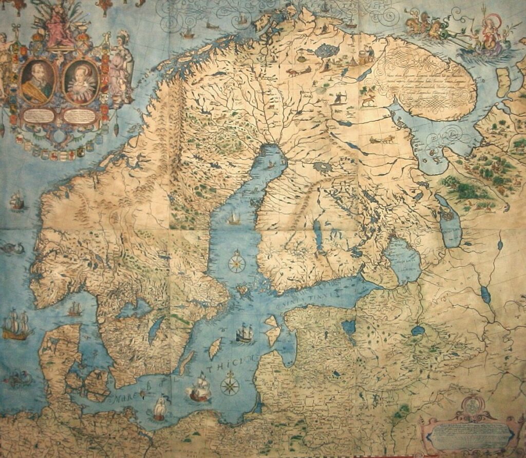Orbis Arctoi nova et accurata delineatio, en karta över Sverige skapad av Anders Bure. Foto: Kungliga biblioteket via Wikimedia Commons