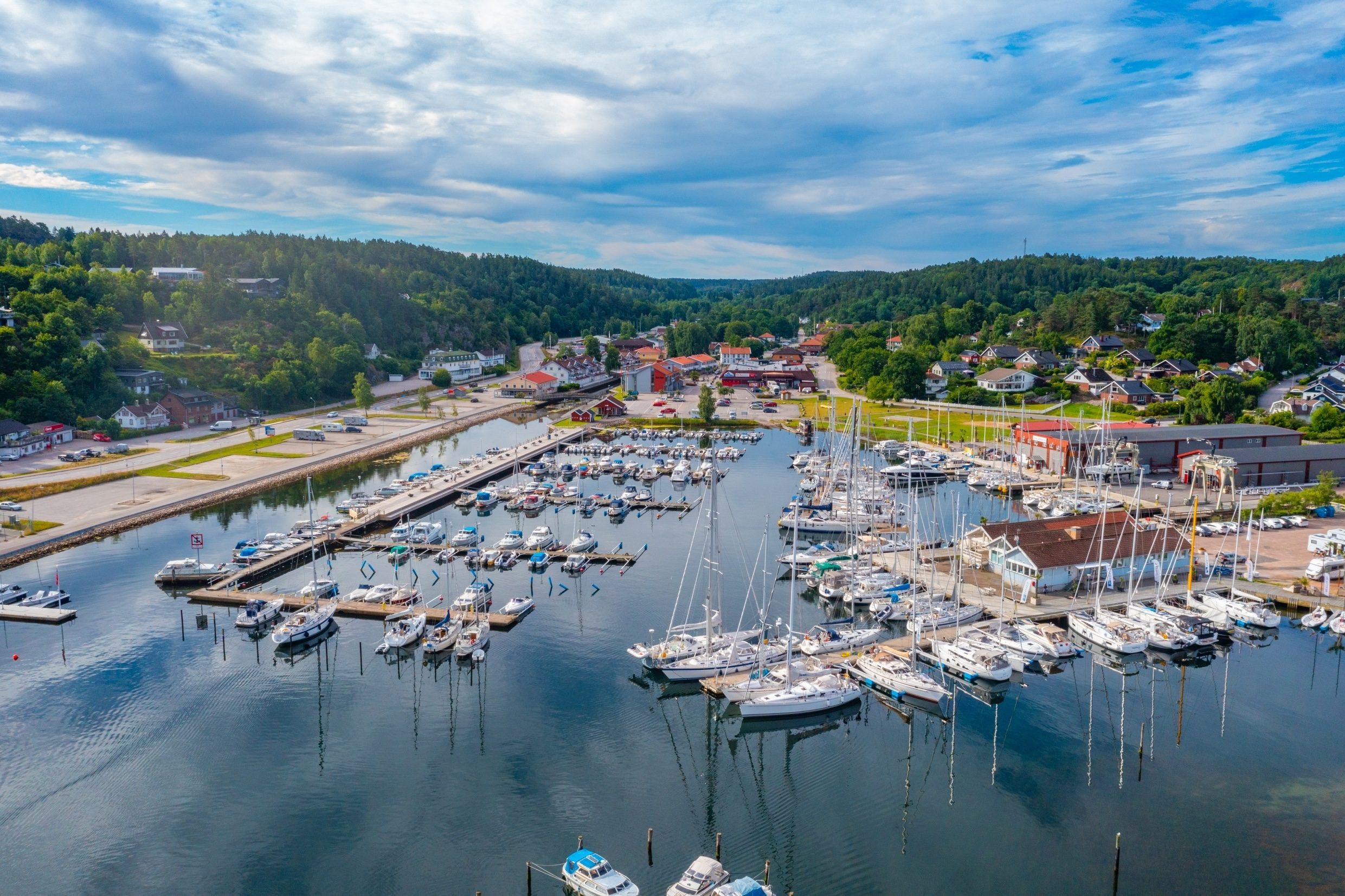Omslagsbilden föreställer en småbåtshamn i Orust. Foto: Shutterstock