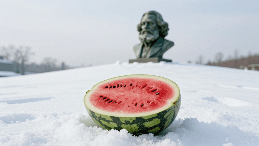Ett aktuellt klimatbråk illustrerar hur vänstern förändrats de senaste decennierna. Joakim Broman lyssnar på podd, läser Karl Marx och funderar på vattenmeloner.