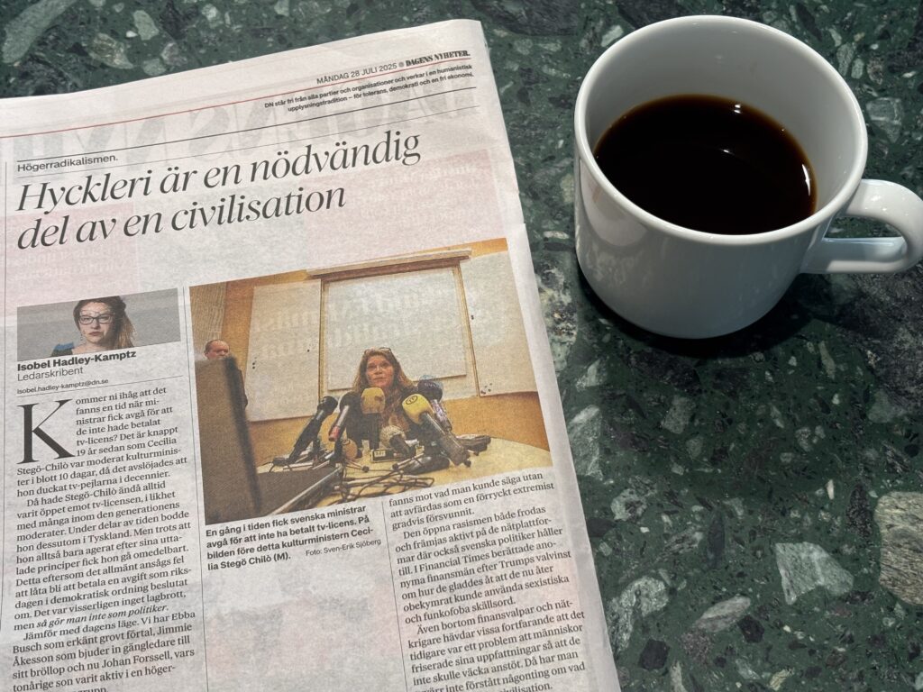 Texten är i min mening ett virrvarr av tankar och hårda anklagelser. Men alla prenumeranter måste inte uppskatta varje text. Det verkliga problemet är att texten hängs upp på en bild på Cecilia Stegö Chilò och en skarp rubrik: ”Hyckleri är en nödvändig del av en civilisation”. Det är en vårdslös journalistik som använder sig av en person som inte längre kan försvara sig.